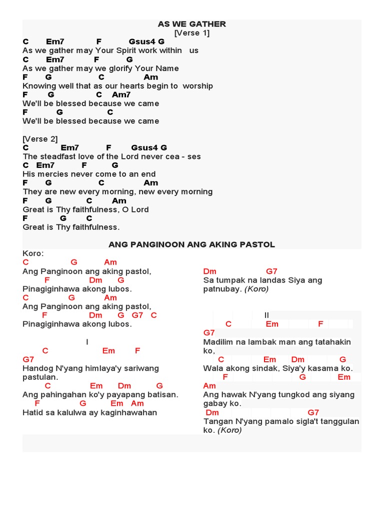 D G A7 D Sa ating pagmamahalan at paglilingkod sa kaninuman D G A7 D D7 Tayoy nagdadala ng balita ng kaligtasan Refrain D G A7. 26 Kung Awit 44 LXX. Tayong lahat ay may pananagutan sa isat-isa G D A7 D A7 Tayong lahat ay tinipon ng Diyos na kapiling nya.